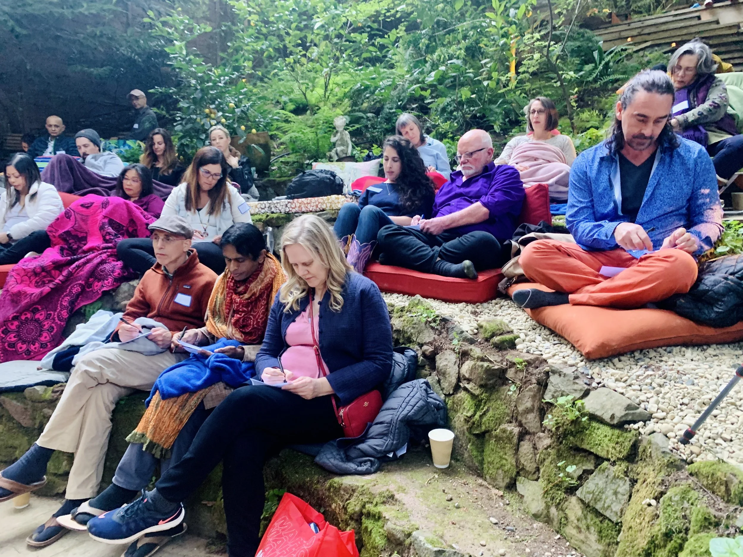 This will be a seated and semi-seated experience in the amphitheater, nestled amidst the tiered garden's stone benches, steps, and landings. Some cushions and will be provided—but please bring your own comforts for stone seating. Bring layers for eve temperatures.